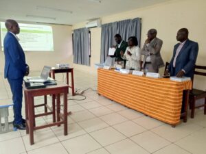 La soutenance s’est déroulée à la salle Serge Pacôme Aoulou de l’ISTC de Cocody, devant un jury composé de Donatien Kanga, Tanoh Pierre Célestin, Samba Koné et Prof. Nangah Adiaffi Angéline, présidente du jury.